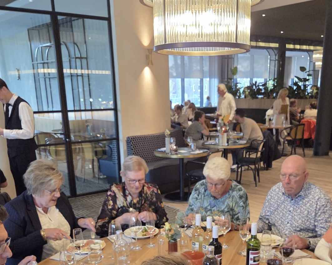 Om dit bijzondere jubileum samen te vieren, kwamen we op 27 september bijeen voor een heerlijk etentje bij Van der Valk in Schiedam. In een gezellige en ontspannen sfeer genoten we van lekker eten, fijne gesprekken en natuurlijk veel herinneringen aan al die mooie jaren.