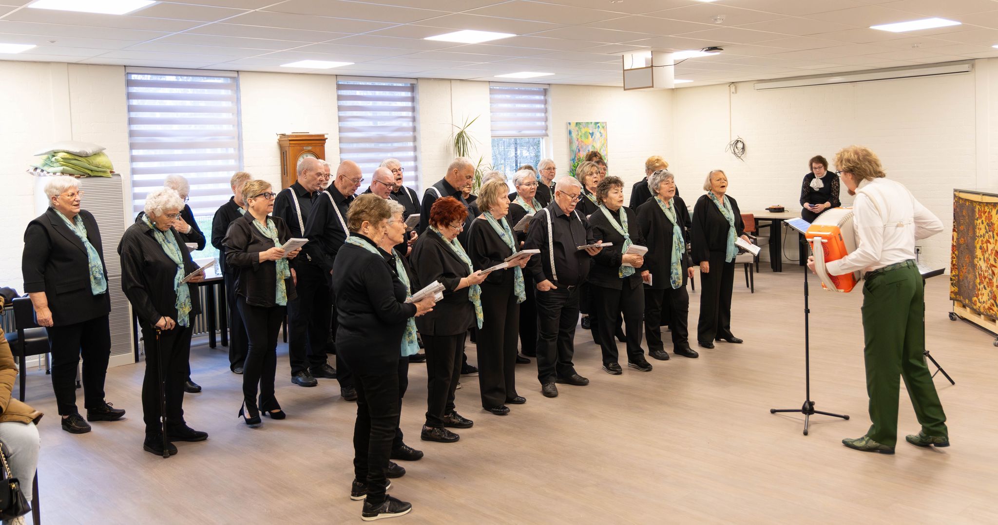 Ons koor kreeg de gelegenheid om ongeveer 30 minuten op te treden. Tijdens dit optreden brachten wij een gevarieerd repertoire ten gehore, waarbij het plezier in het zingen duidelijk hoorbaar was. Het publiek reageerde enthousiast en bij verschillende liedjes werd zelfs spontaan meegezongen, wat zorgde voor een extra warme en gezellige sfeer in de zaal.